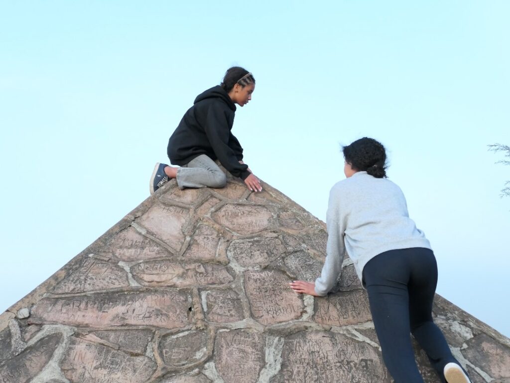 3️⃣À la Source du Nil, des enfants touriste escaladent la pyramide symbolique marquant le début du fleuve légendaire. entre curiosité, fierté et héritage historique.