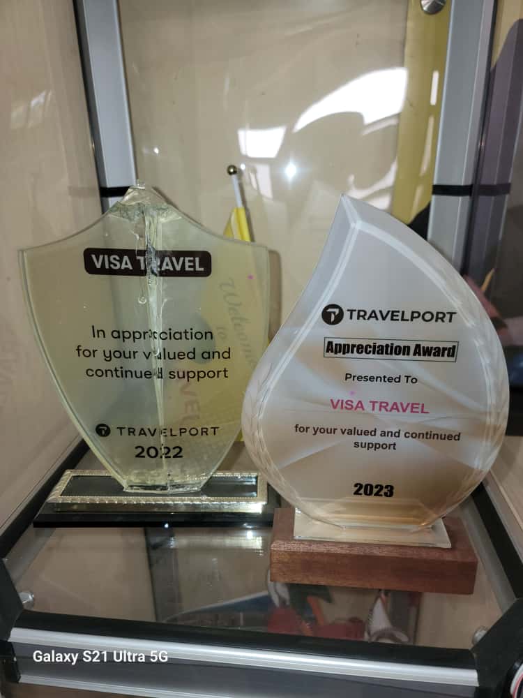 • “Reconnaissance de l’excellence : Visa Travel and Tours SPRL fièrement récompensée par Travelport en 2022 et 2023 pour son engagement et sa performance.”